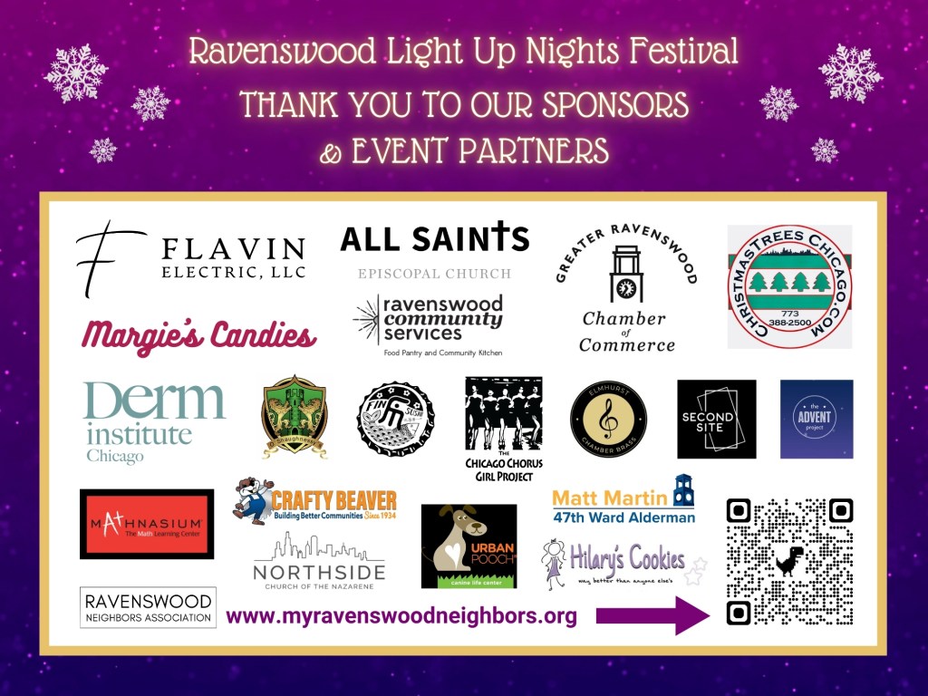 Thank you to our incredible event sponsors and partners, All Saints Episcopal Church and the Greater Ravenswood Chamber of Commerce. This event would not be possible without their support.