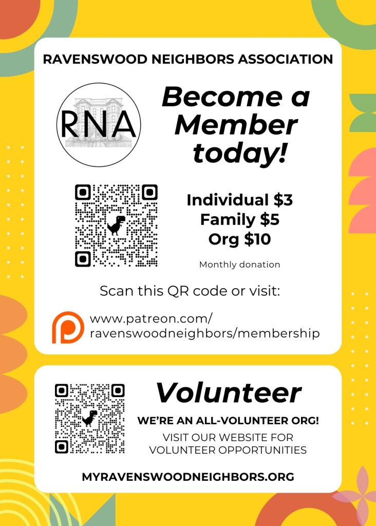Do you love living or working in the Ravenswood neighborhood of Chicago? Do you want to meet neighbors, attend community events, and stay informed on local news? Become an RNA Member today!