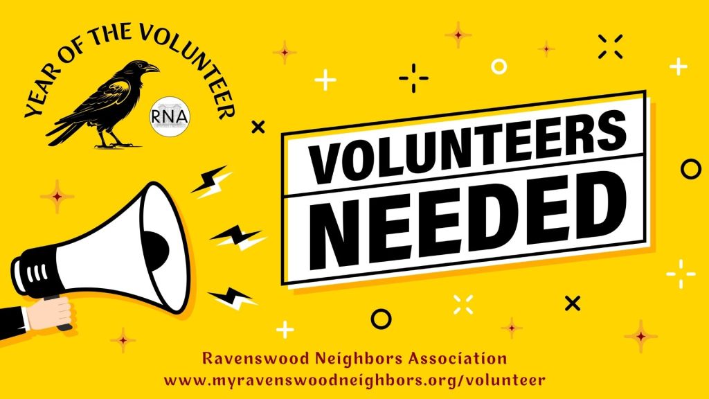The Ravenswood Neighbors Association (RNA) is an all-volunteer, non-political, non-profit, resident-driven organization that seeks to promote the well-being, safety, vitality, and identity of our community by fostering and encouraging stronger relationships between residents, local businesses, and other neighborhood organizations; sharing news and information throughout our network; and promoting local initiatives and programs.